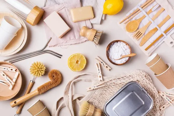 These include bamboo brushes, wooden cleaning tools, compostable kitchen accessories, and kraft packaging materials. They break down naturally without harming the environment.